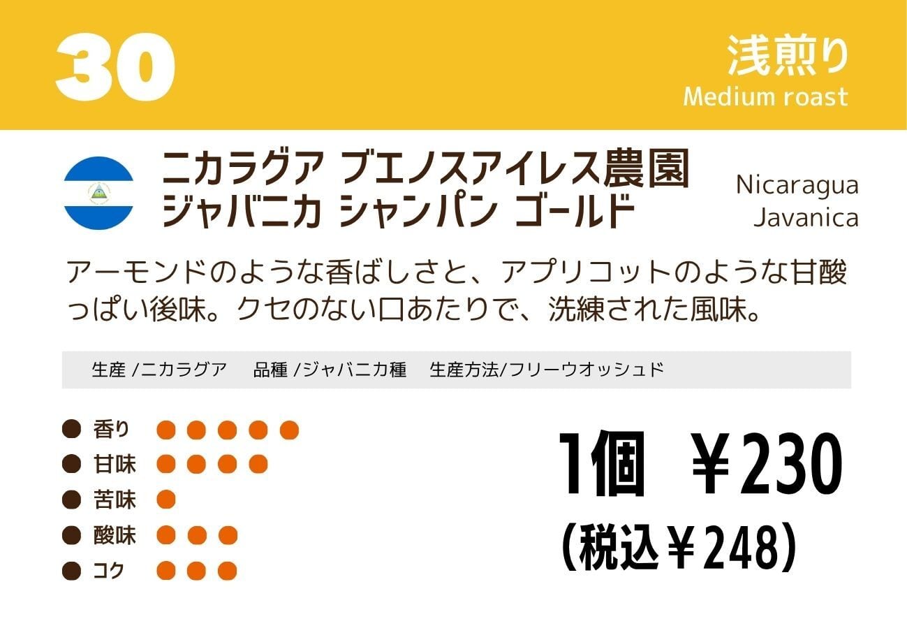 ニカラグア ブエノスアイレス農園 ジャバニカ シャンパン ゴールド